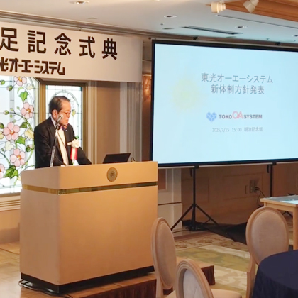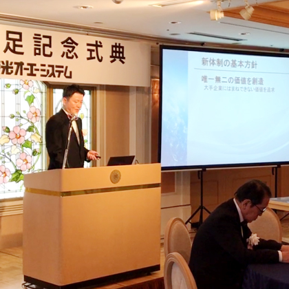 当日は、これまでの弊社の歩みをご紹介するとともに、新たに就任した役員のご紹介を行い、今後のビジョンを共有させていただきました。